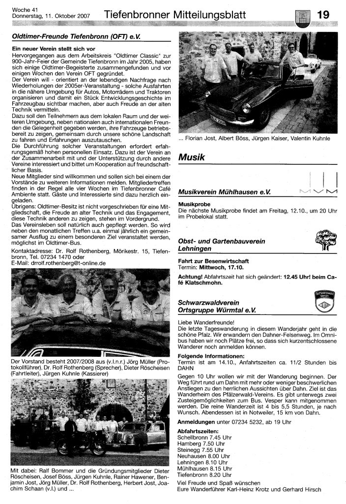 Oldtimer-Freunde Tiefenbronn (OFT) zu geben.